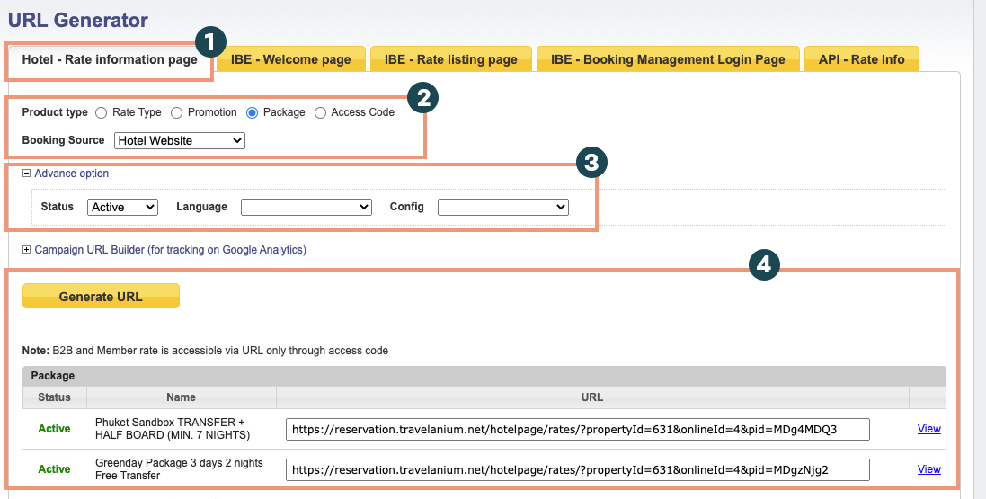 STEP 1 : เข้าสู่ระบบ CRS : Travelanium จากนั้นเลือกไปที่เมนู : URL Generator