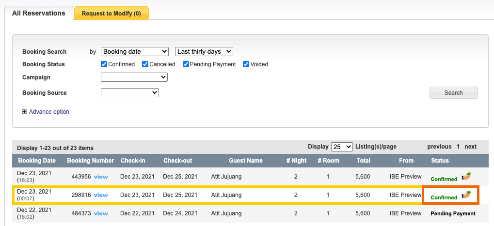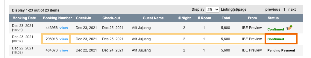โดยปกติก่อนที่เราจะเข้ามาดูรายละเอียดแต่ละ Booking หรือดูเลขบัตรเครดิตใน Booking จะเห็นได้ว่า สถานะของ Booking นั้นจะขึ้นว่าเป็น Confirmed ที่ไม่มีสัญลักษณ์เพิ่มเติม และเพื่อป้องกันการสับสนกรณีแต่ละโรงแรมมีเจ้าหน้าที่หลายท่านที่ดูแล