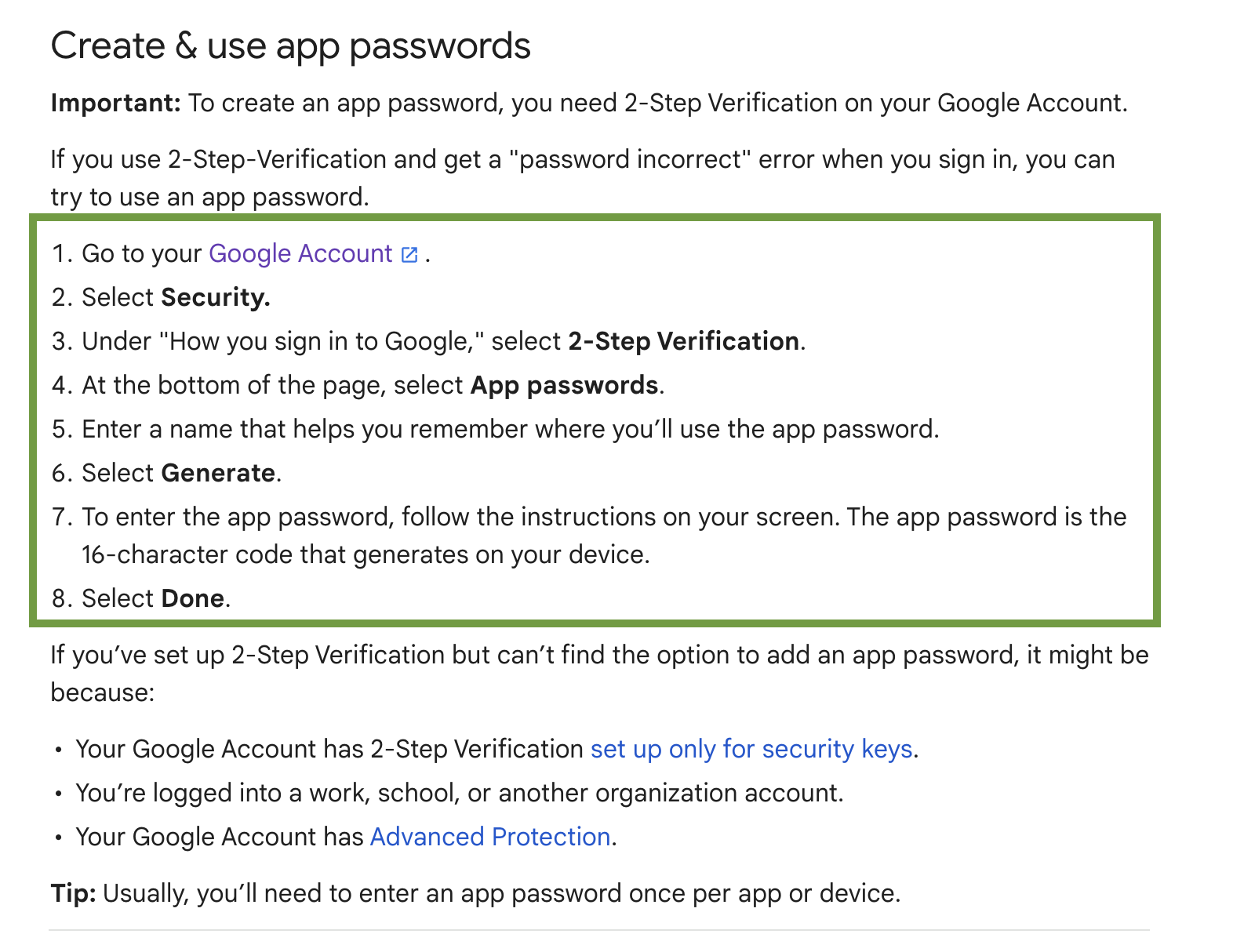 - App password