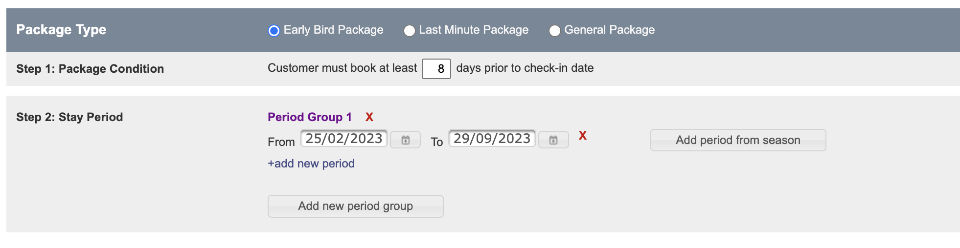 2. สร้างเงื่อนไขการจองล่วงหน้า อย่างน้อย 7 วันก่อนเข้าพัก โดยให้เริ่มเข้าพักได้ตั้งแต่วันที่ 25 กุมภาพันธ์ – 29 กันยายน 2566